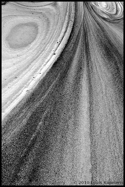 Sand and snow shaped by wind on a black sand bearch near Vic